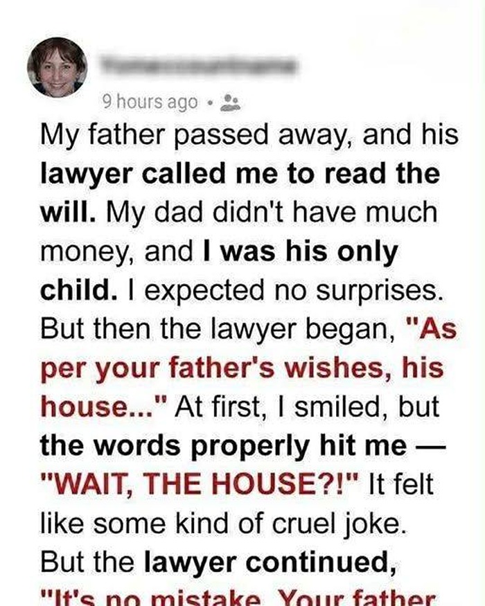 It wasn’t just the loss of a parent; it was the loss of a foundational pillar. As I navigated the murky waters of grief, handling the funeral arrangements and the endless paperwork that accompanies death, I assumed his estate would be as uncomplicated as his life had been. I expected a modest savings account, perhaps his old truck, and a box of sentimental trinkets. So, when his lawyer summoned me to his office for the reading of the will, I went with a heavy heart but no great expectations.