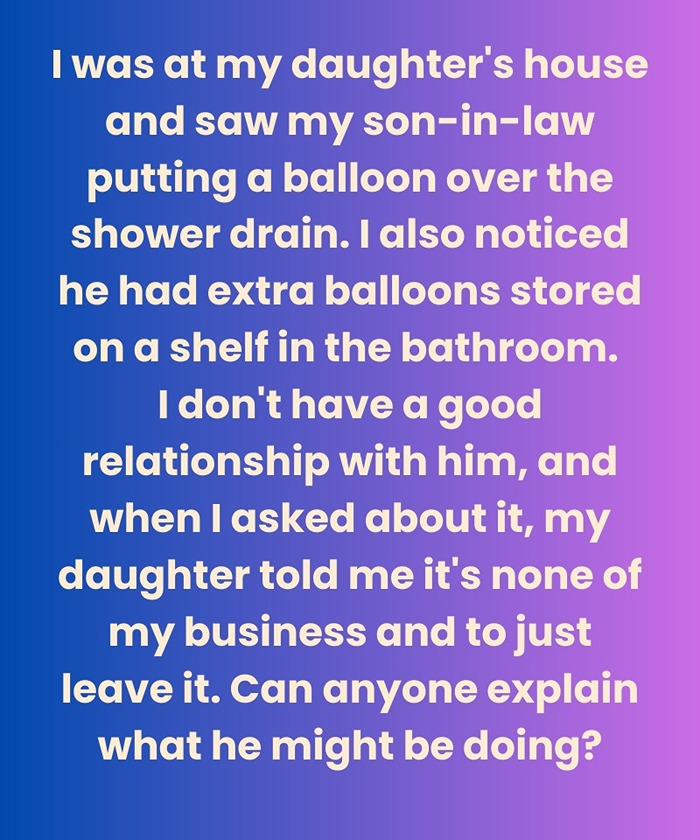 The process is simple. Take off your shower drain cover. cut the ends off a standard balloon so it forms a stretchy tube. then slide it around the drain cover until it fits snugly. Once you put the cover back. the balloon creates a narrower and more controlled passageway.