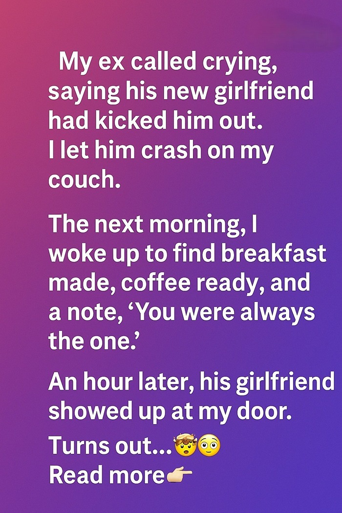 My ex called crying, saying his new girlfriend had kicked him out. I let him crash on my couch. I didn’t expect anything dramatic to happen; I simply felt it was kind to offer someone I once cared about a place to stay.