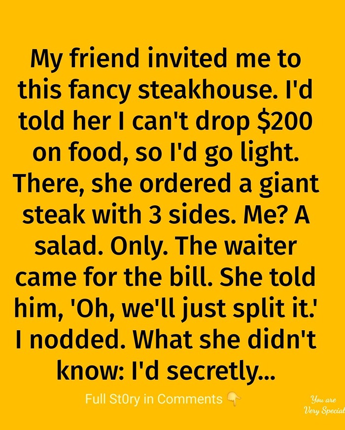 I tried to enjoy the meal, but I felt uneasy the whole time. I’ve known her long enough to see the pattern—she likes to spend a lot and let someone else deal with the cost.