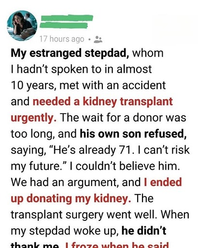 There was a pause, then words that shifted the ground beneath me. Richard had been admitted after a sudden medical emergency. His kidneys were failing rapidly. Doctors were doing everything they could, but his condition was serious. Very serious.