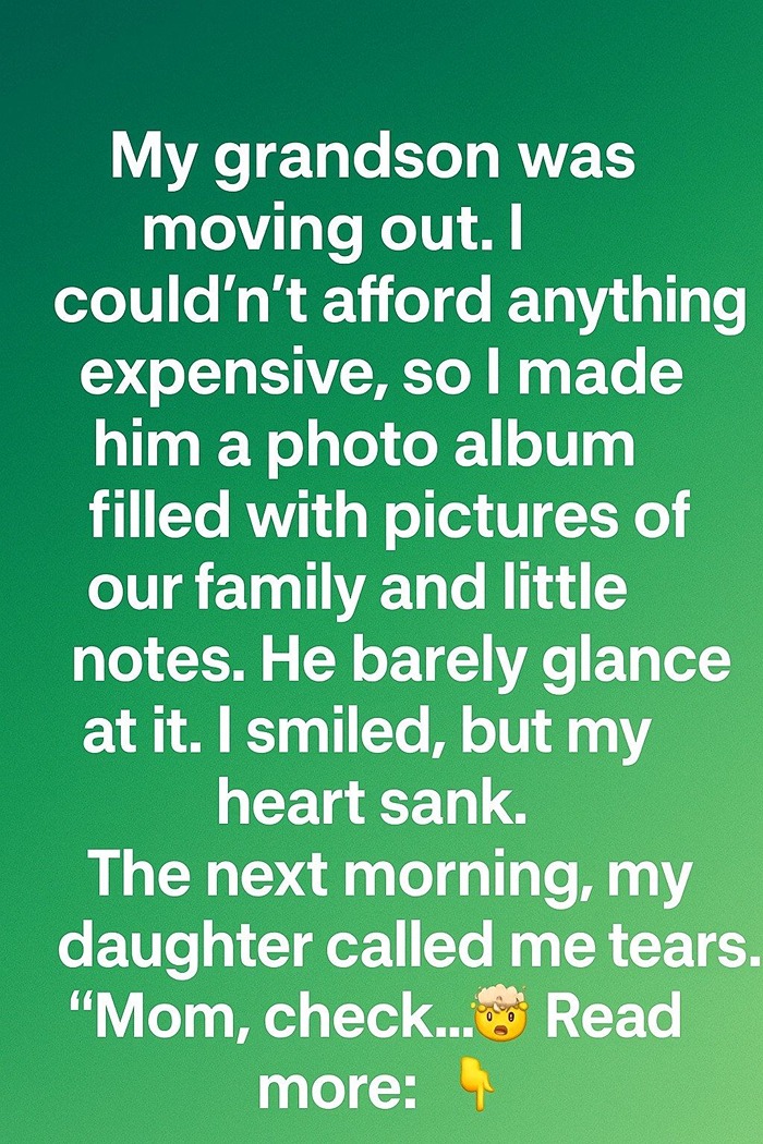 I thought my gift had failed. His eyes slid past the photo album, back to the boxes, and my heart sank. I smiled anyway, swallowing the sting. That night, I lay awake replaying every second, wondering if love had finally become invisible. But at dawn, a knock, a package, and my grandson’s handwriting on a small no… Continues…