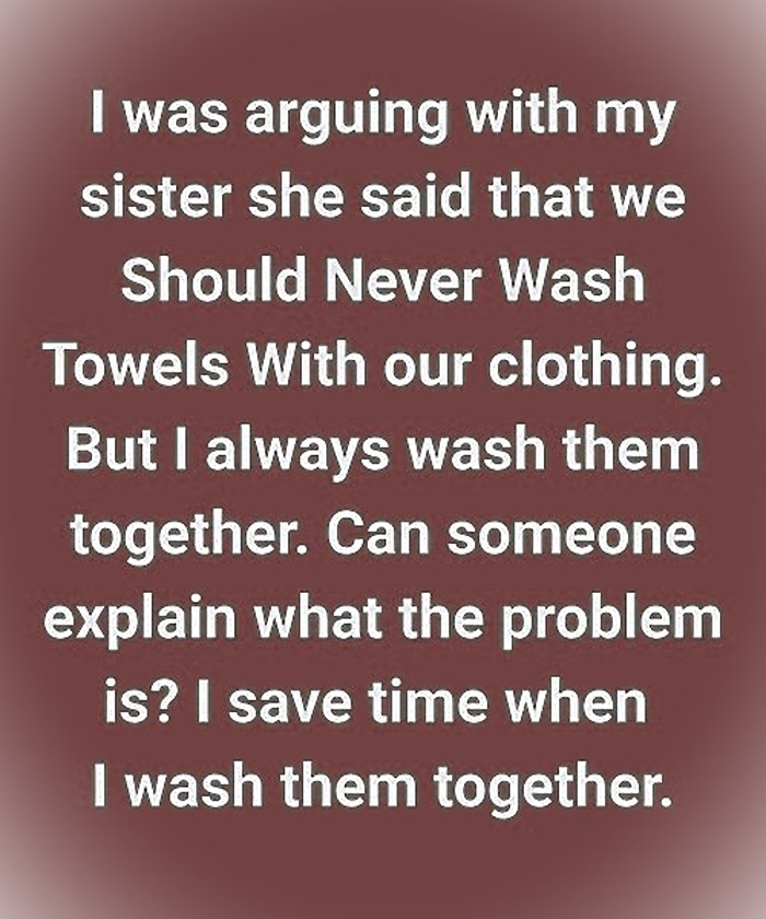 It all started on a seemingly ordinary day when I mentioned to my sister Sylvie that I usually toss towels in with my regular clothes. To me, it made perfect sense: it saves time, simplifies laundry day, and keeps all the dirty laundry moving through the wash at once. I explained this reasoning to her as casually as I could, assuming she’d agree.
