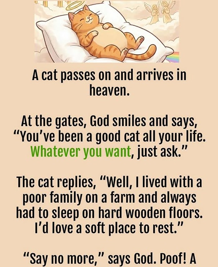 The punchline hits like a lightning bolt from the clouds. A dead farm cat in heaven, mice on roller skates, and God innocently running the most adorable celestial delivery service in history. Then comes that chillingly perfect line about “Meals on Wheels,” and suddenly paradise looks a lot like a cartoon crime sce… Continues…
