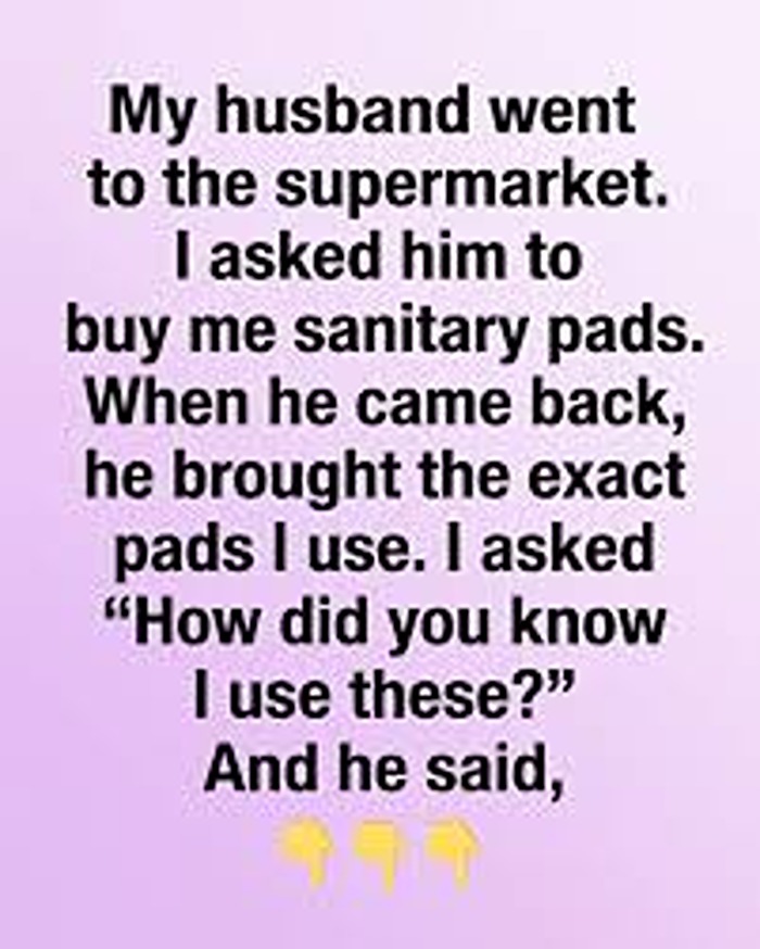Then one day, my husband went to the store. Before he left, I asked him to buy sanitary pads. I thought it would be confusing for him and turn into a mess—texts, pictures, or calls asking what to get.