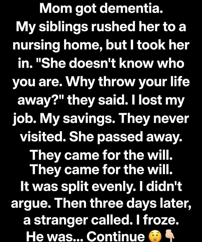 Afterward, my siblings returned, efficient and composed. The will was opened. Everything was divided equally, exactly as she had arranged years earlier, before illness reshaped her world. I didn’t object. I didn’t explain the nights without sleep, the years without a paycheck, the slow erosion of my own life. Grief had already taken what it wanted. I didn’t have the strength to fight for validation.