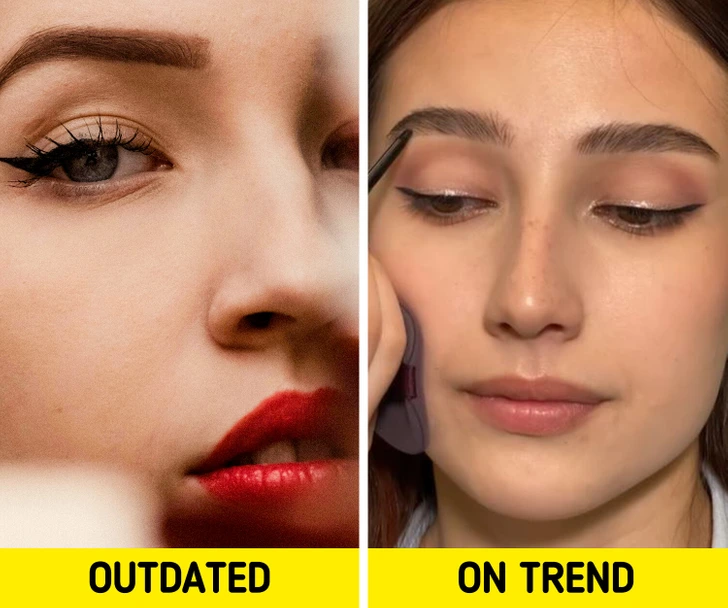 The classic black eyeliner is no longer relevant — now bold, graphic lines are in fashion. Plus, if you’re older and your skin is losing collagen, also if you’re stressed and sleep-deprived, fashion experts advise caution with black eyeliner.