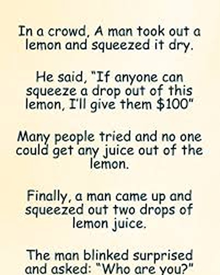He said, “If anyone can get even a drop from this lemon, I’ll give $100.”