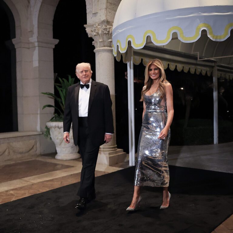 One marquee message at the theater teased, “Does Melania wear Prada? Find out Friday.”
