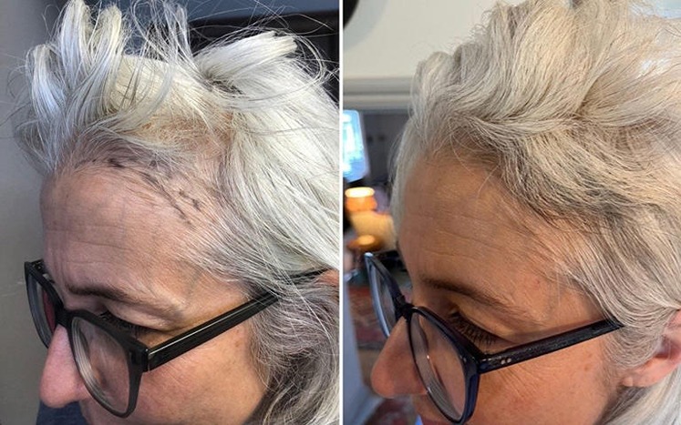 I’m starting a six-week course of Calecim, an ointment which sounds even stranger, containing “proteins and growth factors derived from umbilical cord lining of New Zealand red deer,” says Kelly Morrell of Scalp Confidential, an aesthetic practitioner who specialises in hair loss. But I’m hopeful. “As long as the follicle is still there, Calecim can be a game-changer,” says Morrell. Like all hair treatments, I’ll have to wait for results, at least six weeks. “Hair is much slower than skin to show change,” says Dr Thivi Marupatthu, the UK’s only nutritionist and dermatologist, and author of SkinFood.