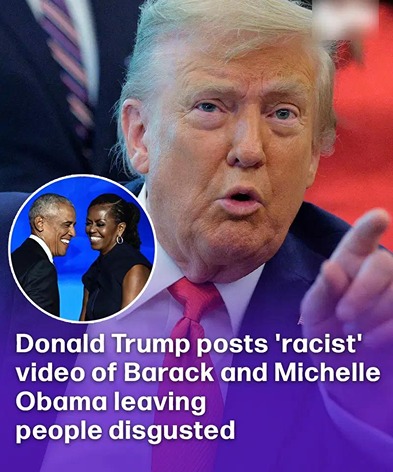 The American President has come under fire for posting a ‘racist’ video depicting Barack and Michelle Obama as monkeys on Truth Social.