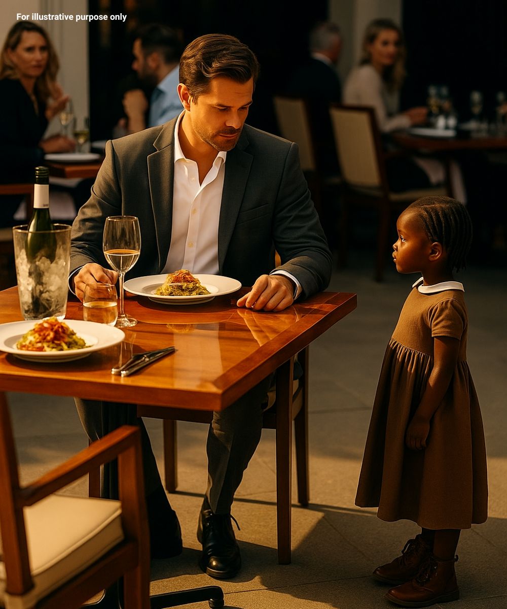 A man in a tailored navy suit, about to enjoy the first bite of a dry-aged ribeye, froze. Slowly, he turned toward the source: a small girl, messy hair, dirty sneakers, and eyes that carried both hope and hunger. No one in the room could’ve predicted that such a simple question would transform both of their lives forever.