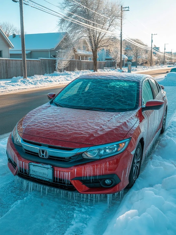 The doors, windows, handles, and windshield all looked like an ice sculpture!
