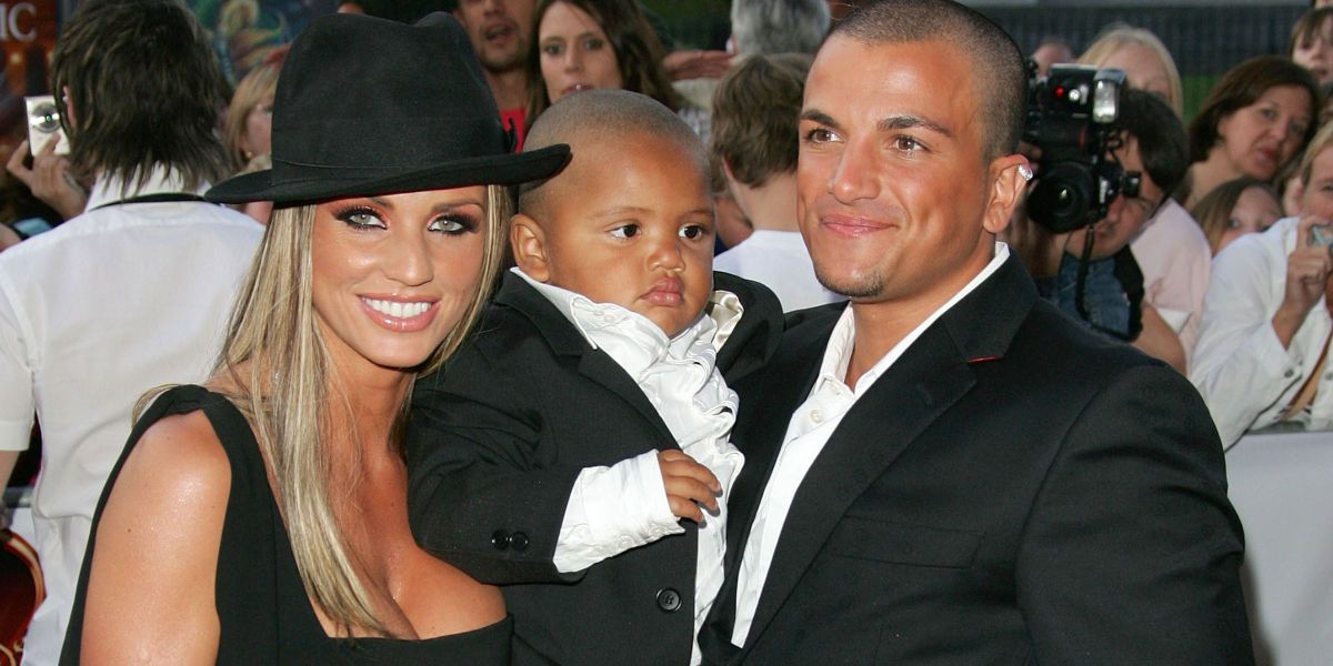 A suited Peter Andre holds a young Harvey Price close at the 2004 Disney Channel Kids Awards in London. The affectionate moment captured the early bond the pair shared, as Peter took on a fatherly role during his romance with Katie Price, who can be seen just behind them in matching black.