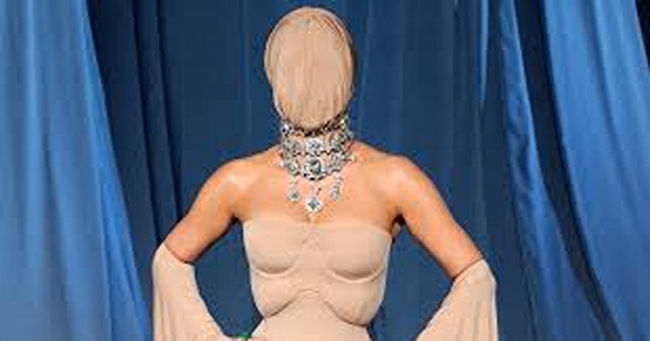 According to reports and images from the event, Kardashian wore a skin-toned Maison Margiela gown paired with a balaclava-style, sock-like mask that covered most of her head. Only the faintest suggestion of her features was visible beneath the fabric, which immediately sparked reactions across social media.