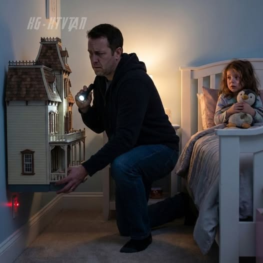 I forced my eyes away from her big brown ones and glanced toward the corner of the room. The dollhouse sat where it always did, perfectly positioned under the window, its tiny porch facing the bed like it was keeping watch over Emma while she slept. It was an old Victorian-style thing, passed down through Sarah’s family for generations—peeling white paint, little green shutters, a miniature brass door knocker. Sarah liked to say it was more “historical artifact” than toy.