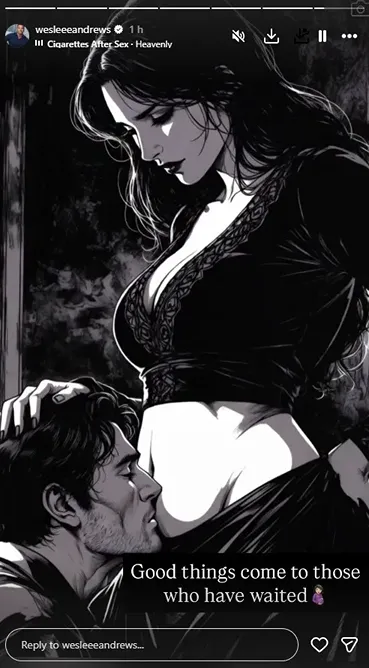Prior to her flying out for their honeymoon, he shared another suggestive photo on his stories for the world to see.