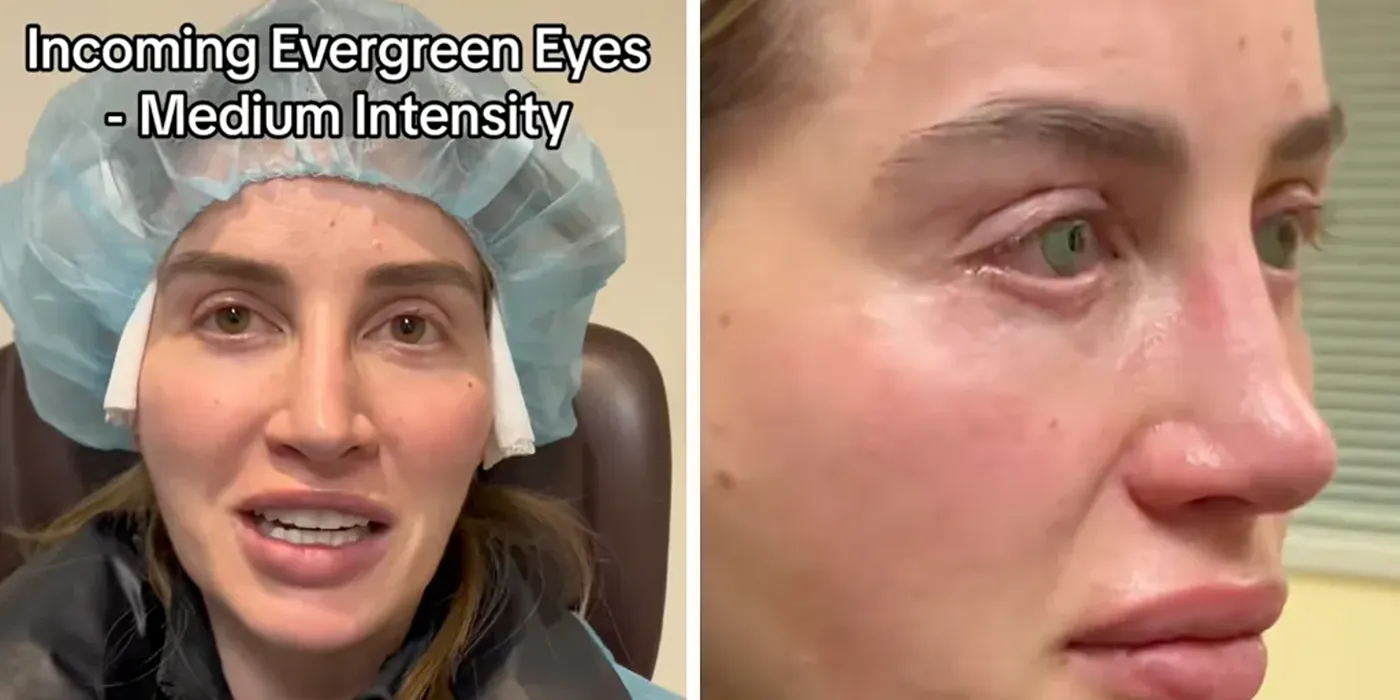 The TikTok video, which has gained over 9.3 million views in two weeks, shows a stark contrast between the before and after. Though the patient's eyes appear red and watering in the video, she says she is "very happy" with the results.