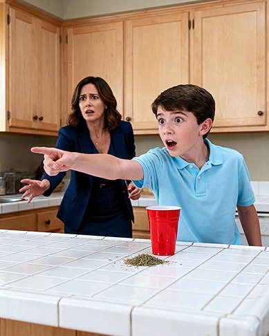 The woman raised the cup to her lips. She paused for a second… then suddenly her head tilted toward the door.