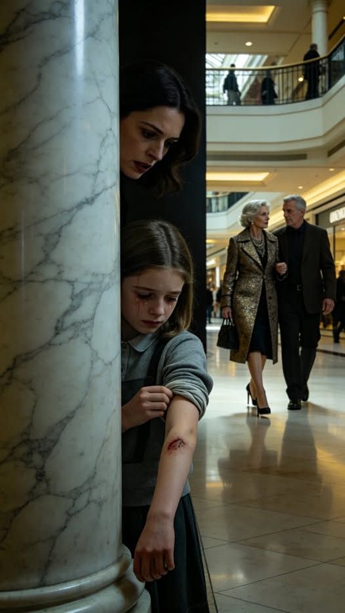 “Mom,” she whispered, her voice trembling. “Quickly. Behind the pillar. Don’t move.”