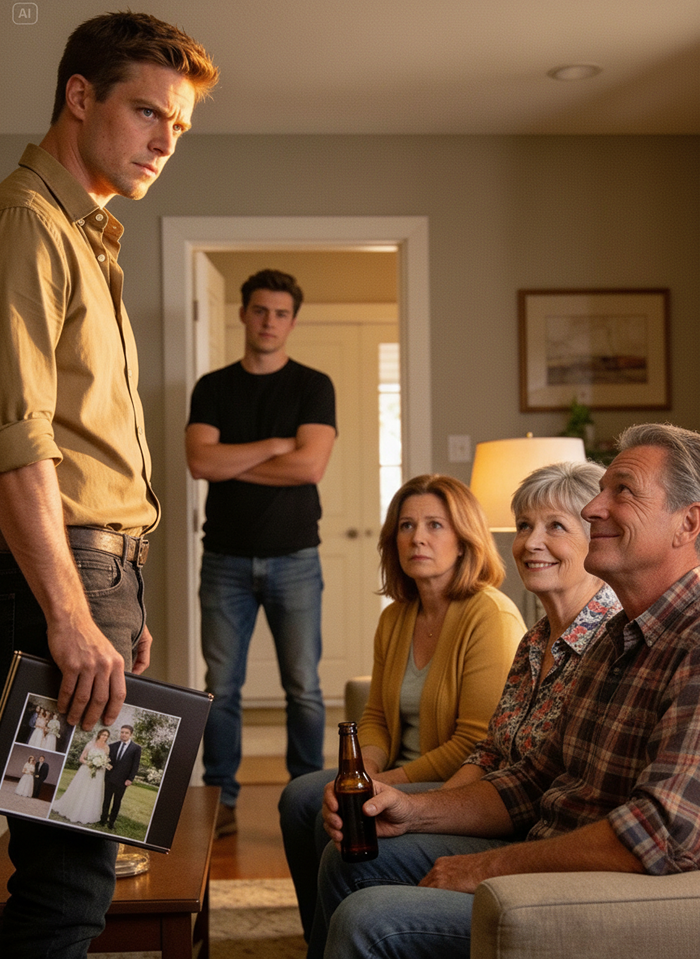 Andrew stared. He lifted the album, his fingers suddenly thick and awkward. Image after image from different angles. His parents beaming. Tyler embracing his bride. Cousins, neighbors, even the former babysitter from next door.