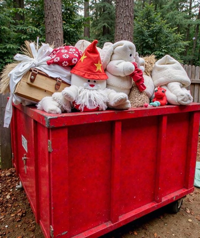 She'd taken the gifts to her place. The dumpster was just for the trash, all the wrapping paper, ribbons, and packaging she couldn't be bothered to keep.