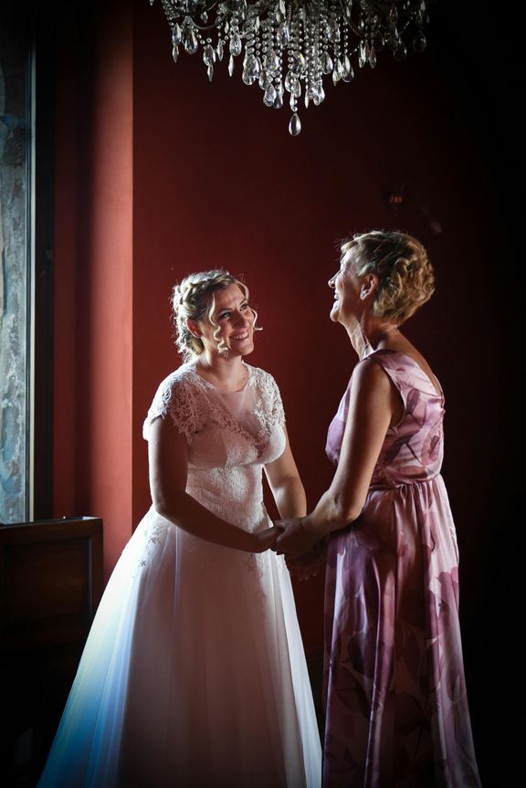 "Here is my daughter-in-law, wearing the heirloom gown my own mother made with her hands. A priceless treasure, found by fate. The most beautiful bride."