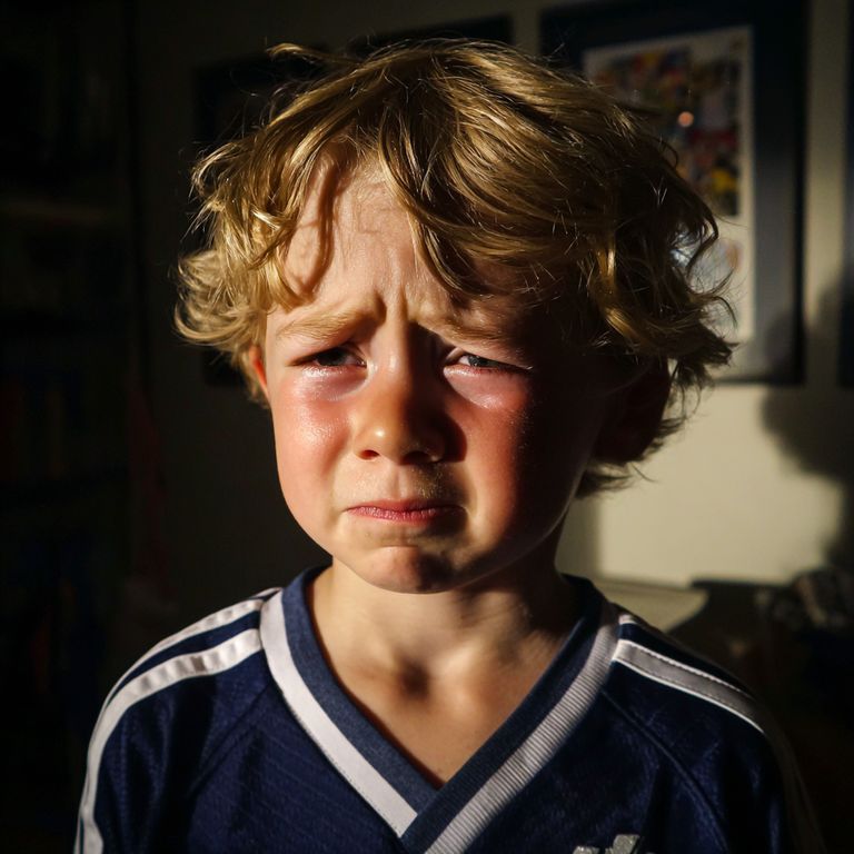 Josh stood frozen in the doorway, clutching his stuffed dinosaur, tears trembling on his lashes.