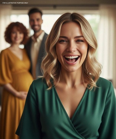 Valentina steps closer, chin raised, tears perfectly poised at the edge of her lashes. She has always known how to perform innocence, even when she’s the one who struck the match. Her rounded belly presses against satin, a living punctuation mark to her version of events.