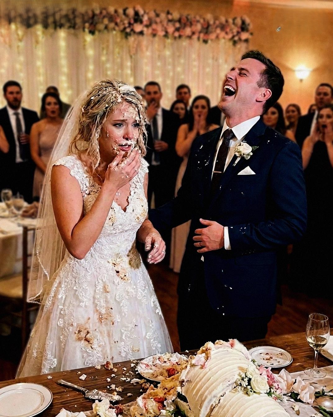 Buttercream covered my face, my hair, my dress. My veil was ruined. I couldn’t see through the frosting and crumbs stuck to my eyelashes.
