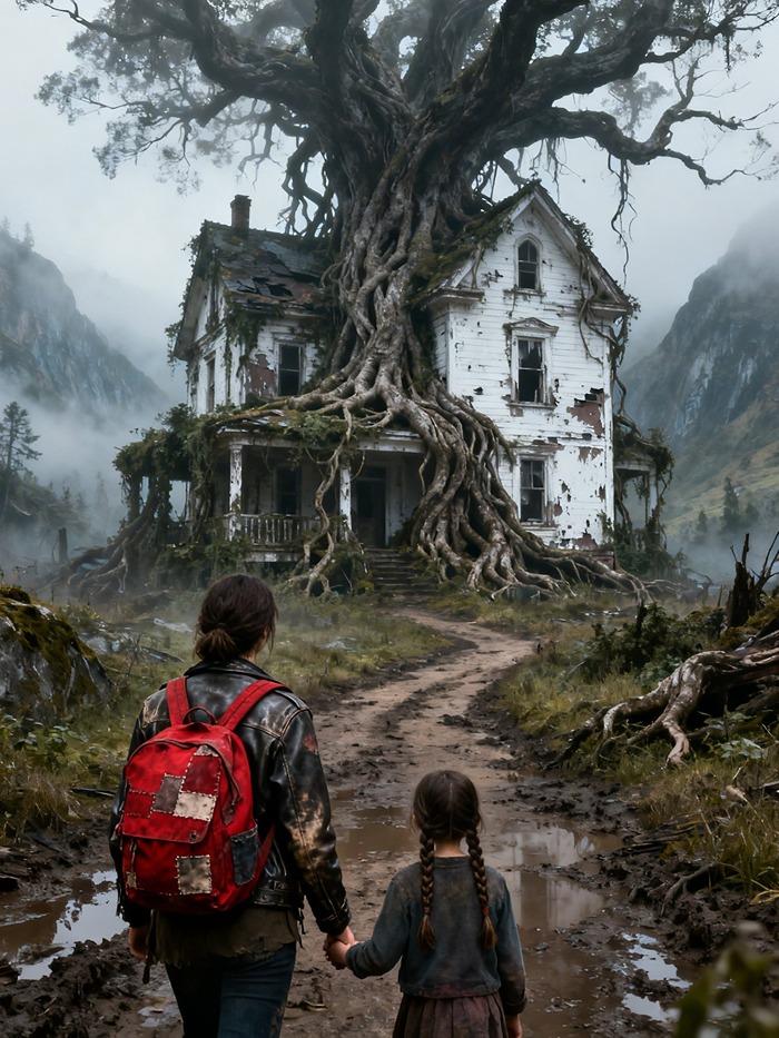 Outside, the wind rattled the broken gutter like it was trying to scare them away.