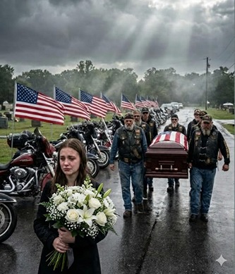 Without further ceremony, six of the riders moved to the casket. They didn’t fumble or hesitate. They positioned themselves with the kind of quiet coordination that comes from years of moving as a unit, and when they lifted, they did so in perfect synchronization, as though the weight belonged to them.
