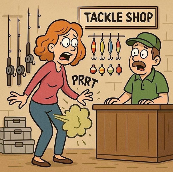 A woman goes into a tackle shop to buy a rod and reel for her grandson’s birthday.