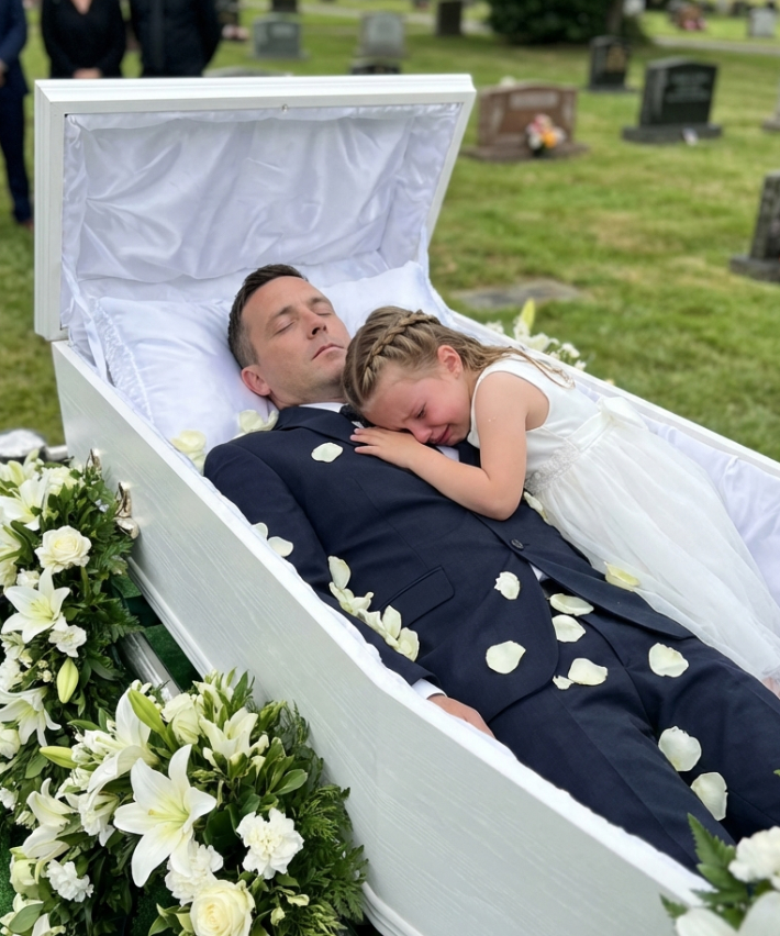 Suddenly, the little girl pulled her hand away from her mother with surprising determination. She crossed the room with short, firm steps, heading straight for the coffin. A murmur of tenderness rippled through the room. “Poor child,” some thought, “she just wants to say goodbye to her father.”