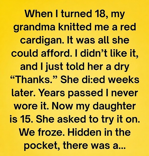 A young woman once inherited a simple red cardigan from her grandmother. It seemed like an ordinary keepsake—something warm and comforting that carried memories of family.