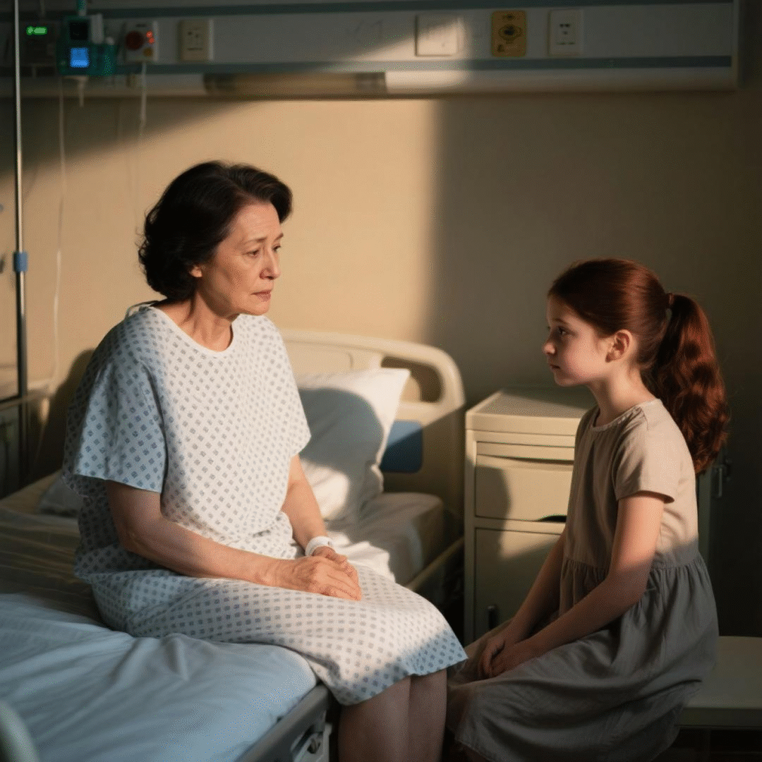 She was quiet, about thirteen or fourteen years old, with dark hair she tucked behind her ears and eyes that looked older than she was. She didn’t talk much. She would pull a chair next to my bed and sit there calmly, like she belonged. I couldn’t speak or ask who she was, but she seemed to understand. She would lean close and whisper softly.