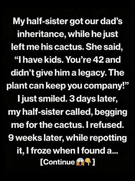I never mentioned the note to my half-sister. The cactus still rests on my windowsill, growing quietly, reminding me over and over again that some of the most powerful legacies come in the form of small and quiet acts.