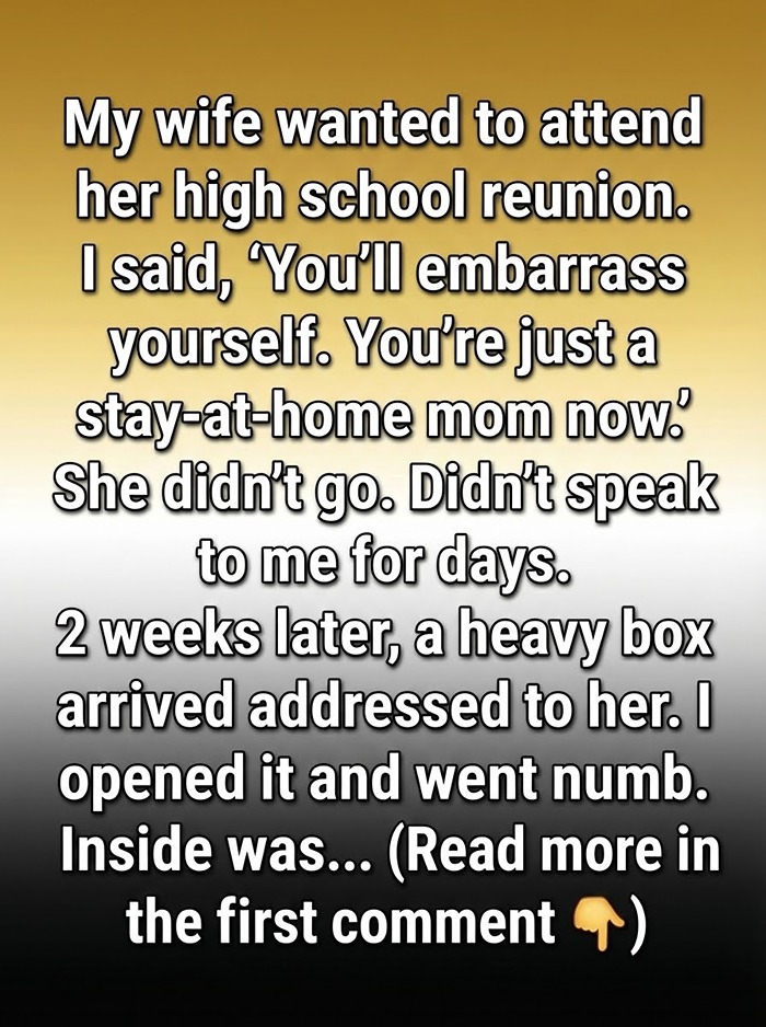 Two weeks later, a large box appeared on our doorstep with her name printed neatly on the label. She was out at the time, and curiosity got the better of me. The box was heavier than expected, not just in weight but in presence. Inside, I found carefully arranged certificates, academic awards, handwritten notebooks, and letters tied together with ribbon. Resting on top was a note written in her familiar handwriting. As I read, my chest tightened. She wrote about her ambitions, the leadership roles she once held, and the achievements she worked hard for. She explained that choosing to stay home with our children was not a fallback, but a deliberate, loving decision—one that didn’t erase who she had been or limit who she still was.