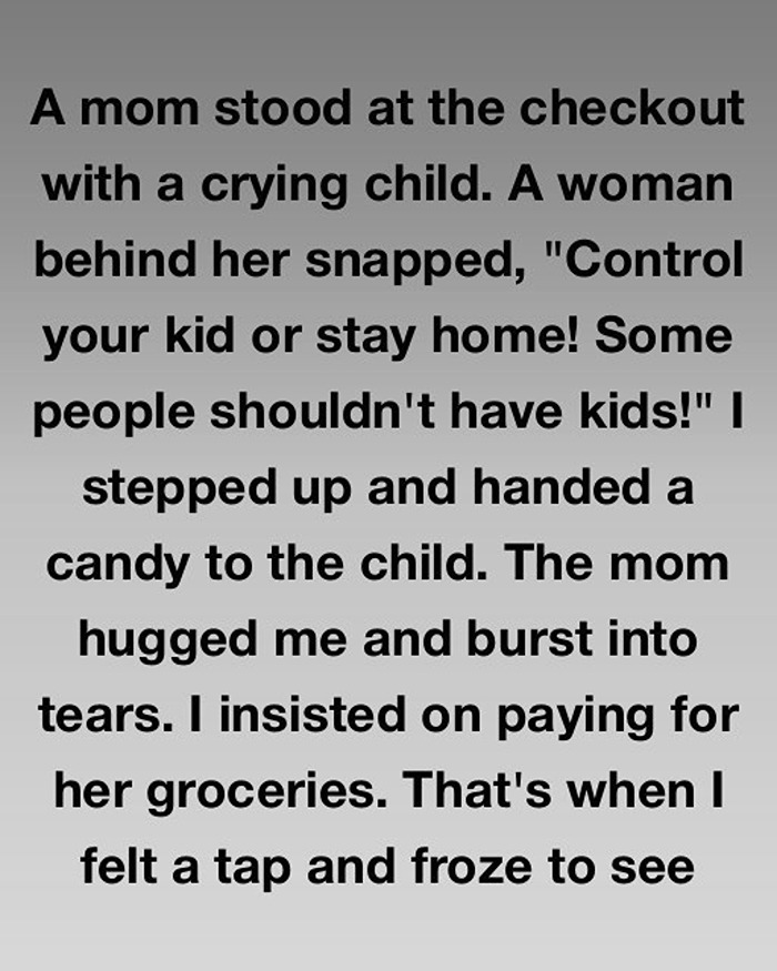 The grocery store was crowded and tense, the kind of place where everyone just wanted to pay and leave. That’s when a little boy in the checkout line began screaming—red-faced, exhausted, and inconsolable. His mother stood frozen, clearly overwhelmed, trying to finish paying while calming him at the same time. A woman behind her suddenly snapped, loudly telling her to “control her kid” and suggesting she shouldn’t be a parent. The words hit hard. The mother shrank inward, fighting tears, while everyone else looked away in uncomfortable silence. I couldn’t.