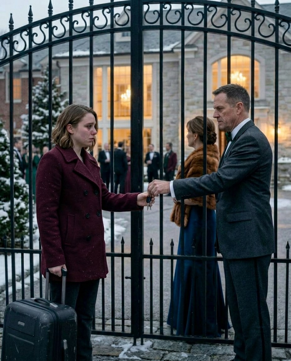 The iron gate felt colder than it should have on Christmas Eve. I stood there in the freezing rain, my fingers wrapped around the bars like a child staring into a shop window. Only I wasn’t looking at something beautiful. I was looking at the house that was supposed to be home, watching warm golden light pour from the windows of the Greenwich estate while my breath turned white in the December air.