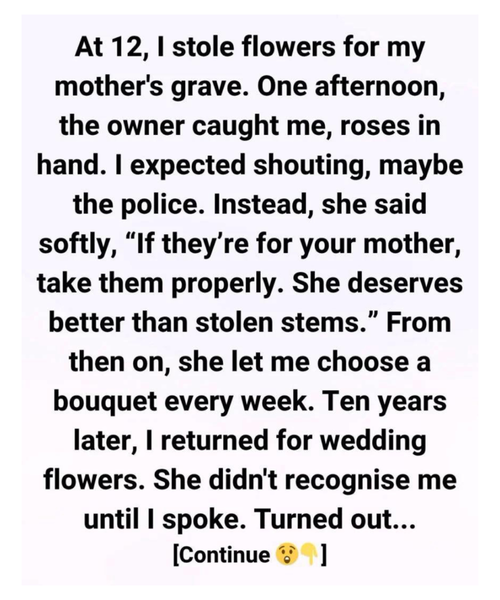 She had passed away the year before, and my father worked long hours, too exhausted to notice how often I slipped out of the house. I had no money of my own. But bringing flowers to her grave made me feel closer to her—as if a small bit of beauty could somehow bridge the distance between the living and the lost.
